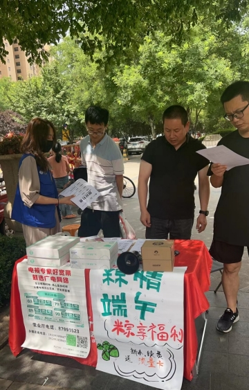 各经营单元积极开展“浓情端午 广电送福”服务进社区活动,为孤寡老人送艾叶、粽子,手把手教老年客户操作智能手机,义务为老旧小区开展信号检测、设备维护等服务,在服务过程中根据客户需要为用户讲解固网融合业务以及《重温经典》频道等用户喜闻乐见的栏目,受到群众普遍欢迎。据统计,活动期间,长安直属公司共计办理5G号卡148张,办理固移融合业务套餐36套。