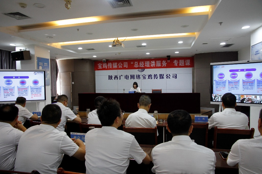 8月12日,宝鸡传媒公司以现场会+视频会形式开展第一期“总经理讲服务”专项活动,市县两级中层以上干部及相关人员共130余人参加。
