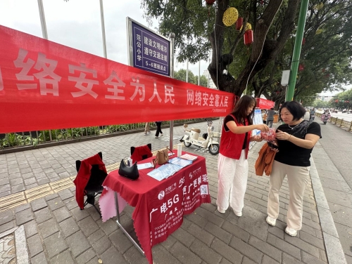 永寿支公司工作人员为广大群众科普网络安全相关知识和公司5G业务近期优惠套餐,现场发放网络安全宣传彩页300余份,提供业务咨询百余次,受到了群众的认可和肯定。