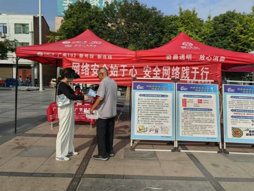 兴平支公司设立网络安全宣传展板4块,组织专人向现场群众讲解网络安全知识,发放网络安全防范倡议书和网络安全科普读物,有效提高了群众的网络安全防范意识和识别能力。