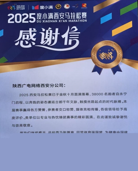 近日,西安分公司收到西安马拉松赛组委会发来的感谢信,信中对分公司在赛事保障中“高效协作、责任担当”的优良工作作风和专业表现给予高度赞扬。