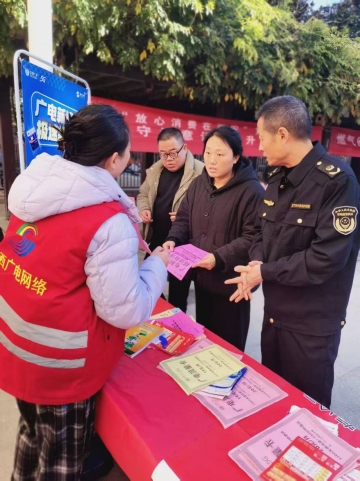 支公司在活动现场设置咨询台,悬挂醒目的主题横幅,营造出浓厚的宣传氛围。工作人员热情接待前来咨询的居民,发放消费维权手册、广电服务指南等宣传单页,针对老年群体关注的保健品消费陷阱、日常缴费维权流程等热点问题,开展一对一地耐心讲解,同时还结合居民的通信业务需求,现场演示广电5G、大带宽等业务,积极推介适配的优惠套餐。