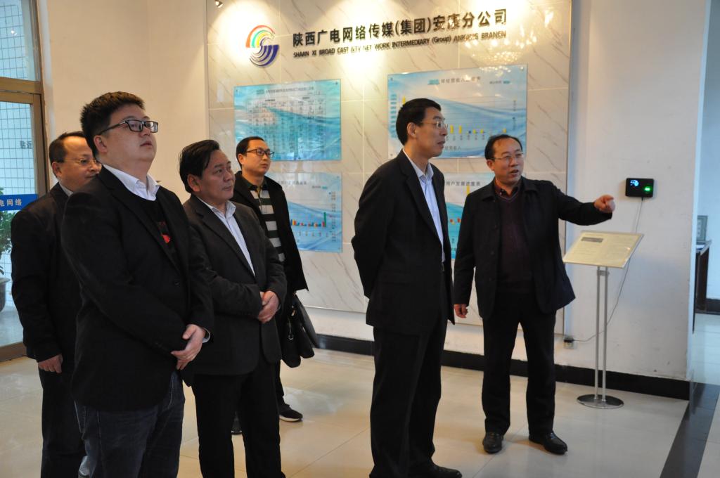11月10日,安康市副市长蒋清海一行莅临安康分公司调研。蒋清海副市长首先观摩了分公司业务展示,又来到安康分公司中心机房了解安全播出工作安排及公司业务发展情况,随后,与公司领导班子及部门负责人进行座谈交流。