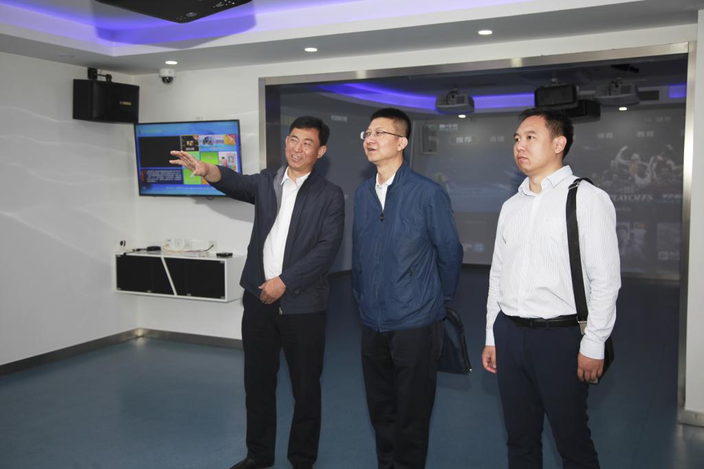 在公司业务演示厅,牟红江副处长详细了解了县级融媒体指挥平台、雪亮工程以及“爱富县”APP客户端的平台组织架构、建设运营等情况。