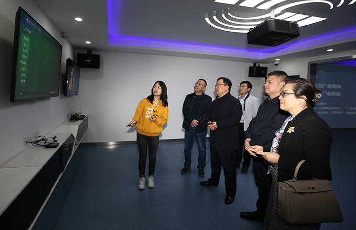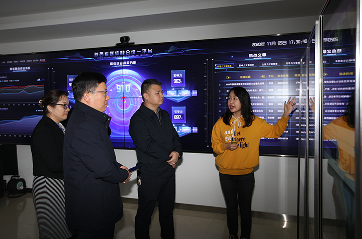 在公司党委副书记、总经理韩普、副总经理樊东的陪同下,刘继永一行参观了公司多媒体数字演示厅,观看了由陕西广电网络建设的省级融媒体统一平台,体验了“闪视频”、“爱系列”APP、“一县一端”、“秦岭云”等客户端,了解了公司体制机制改革创新以及“雪亮工程”建设等方面的高质量转型发展成果。