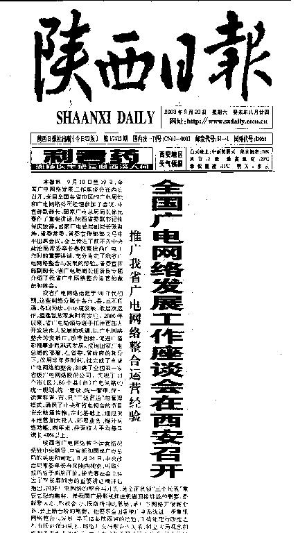 2003年9月20日《陕西日报》“全国广电网络座谈会在西安召开”