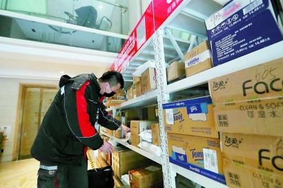 疫情防控期间,当一个个被翘首盼望的包裹及时飞入寻常百姓家时,无数城市穿行者的忙碌身影汇成一道让人安心、传递暖意的风景线。 资料图片 蒋迪雯 摄