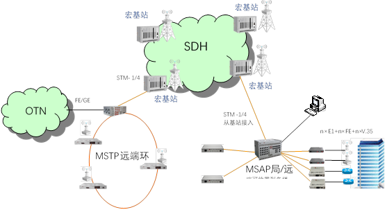 MSTP(Multi-ServiceTransfer Platform)/MSAP(Multi-Service Access Platform)采用传统的SDH技术,以SDH技术为基础,采用先进的GFP、VCAT和LCAS技术,融合以太网交换技术和ATM交换技术,实现TDM业务、以太网业务和ATM业务的综合传输。