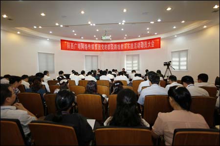 8月30日,陕西广电网络传媒集团利用网络视频会议系统召开“党的群众路线教育实践活动动员大会”,产业集团党的群众路线教育实践活动领导小组副组长、产业集团党委副书记、纪委书记赵汝逊同志在主会场出席大会并讲话。