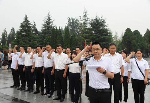 全体党员共同瞻仰了革命先辈们的雕像,在扶眉战役烈士纪念碑前向烈士默哀并敬献花篮,深切表达对革命先烈的崇高敬意。在庄严肃穆的气氛中,大家面向党旗,庄严地举起右手,重温入党誓词。
