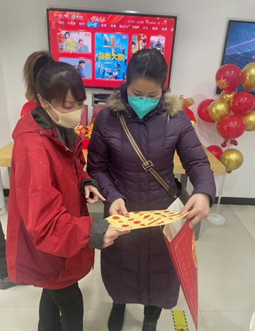 党员们在营业厅为用户讲解资费、查询小区网络覆盖、推荐套餐,邀请用户参加分公司的新年活动。同时,部分党员还为用户讲解反诈常识和反诈APP操作流程,帮助用户提高反诈意识,以实际行动支撑一线业务发展。