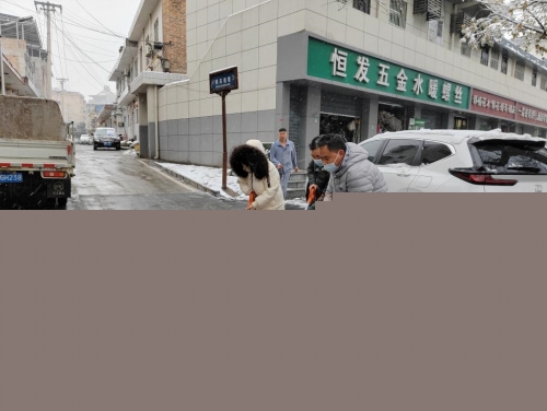 党员干部们不畏严寒,认真清扫包抓路段的积雪,消除安全隐患,受到过往群众的赞扬。