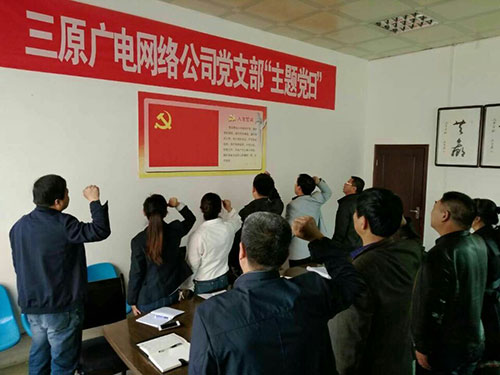活动在庄严的气氛中进行,三原支公司党支部全体党员高唱《国歌》,支公司党支部书记带领大家重温入党誓词,并进行了“主题党日”教育活动。支公司党支部提出明确要求:党员干部要借助为全县贫困户、五保户、残疾人家庭“政府购买”有线电视公共服务这一项目实施,努力将惠民政策落到实处,切实践行“为民、务实、清廉”的领导干部党风廉政建设要求,坚持重实际、鼓实劲、求实效,不图虚名,不务虚功,扎扎实实地把党和国家的利民政策落到实处。