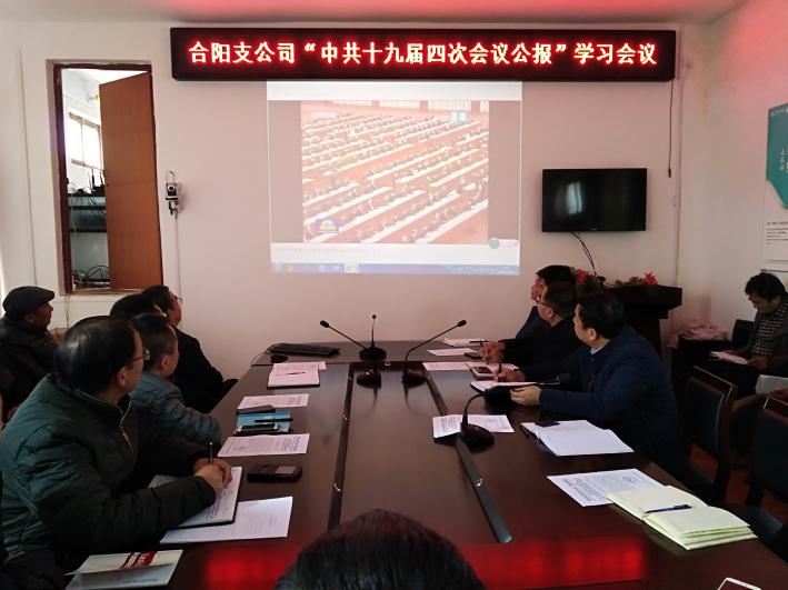 近期,合阳支公司组织全体员工深入学习十九届四中全会精神,要求大家通过学习深刻领会和准确把握全会精神,在实际工作中以此为指导,不断加强思想淬炼,为经营发展贡献力量。