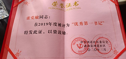 3月25日,武功支公司张党敏同志被武功县河道社区评选为脱贫攻坚“优秀第一书记”